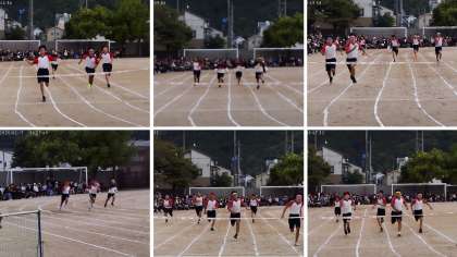 競技の最初は100m競争です。1年女子から3年女子まで、その後は男子と、徐々にスピードがあがり見ごたえのあるレースでした。誰一人手を抜くことなく最後まで走り切っている様子が素晴らしかったです。