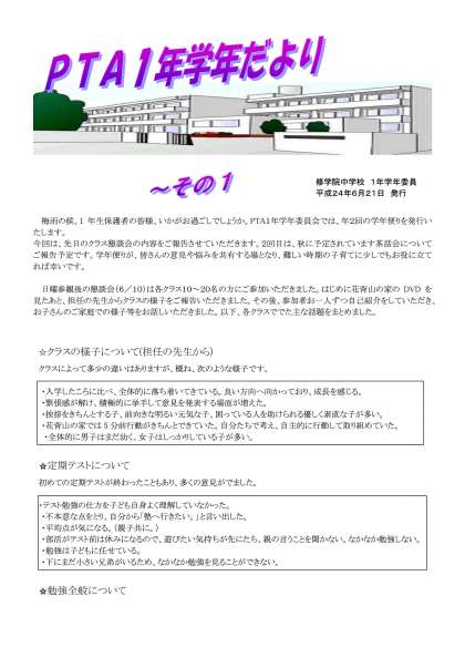 PTA1年生学年便りが完成しました。配布文書にも掲載しておりますのでご覧下さい。