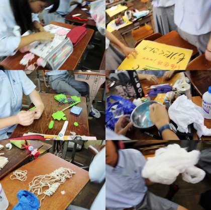 クラスごとに工夫をこらし、出品作品の制作途中です。何が出来上がるかは当日を楽しみにしておいてください。