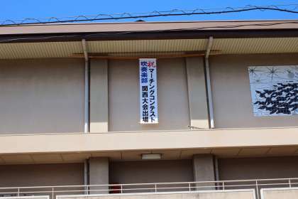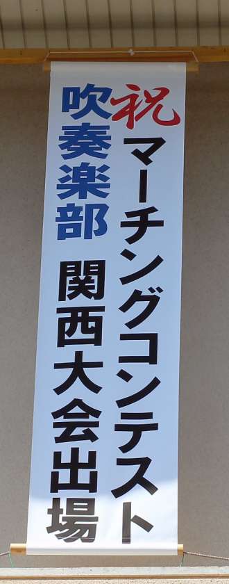 吹奏楽部が、マーチングコンテスト関西大会に出場が決まり、垂れ幕を付け替えました。