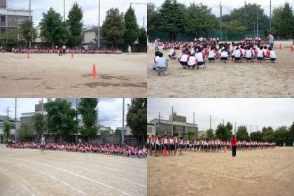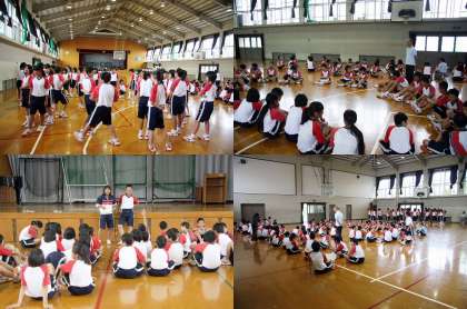 体育館で体育大会の種目確認をした学年と、グランドで行った学年がありました。