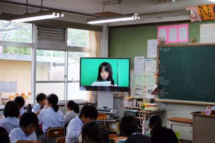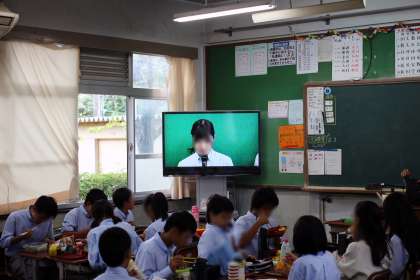 選挙管理委員が、校内放送(テレビ映像も)を通じて行いました。
