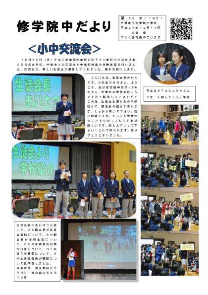 修学院中だより平成24年度58号です。