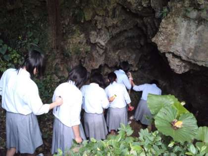 8組の入壕体験の様子です。8組はヌヌマチガマの体験です。