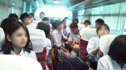 前半クラスは予定通りひめゆりの塔での活動を終了し、宿にむかって出発しました。