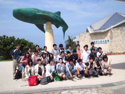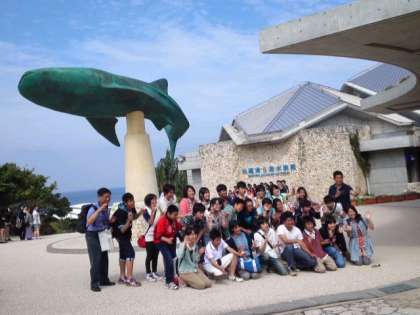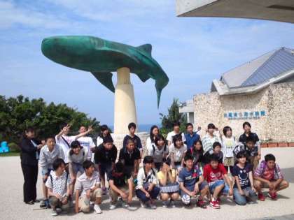 後半各クラス、じんべいさめのモニュメント前で記念撮影を終え、美ら海水族館に入館しました。