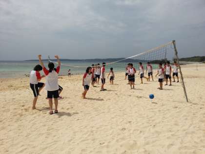 7組はビーチバレーを楽しんでいます!男子対女子です。