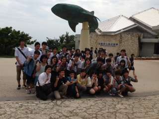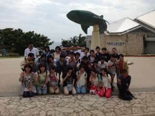 前半クラスも美ら海水族館に到着し、記念写真を撮っています。