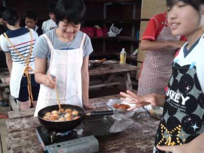 サーターアンダーギーも各クラス盛り上がりながら作っています。