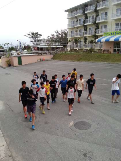 今朝のトレーニングは5:40からの予定でした。昨日までの疲れからか、寝坊したサッカー部員も多く、5:55から開始しました。