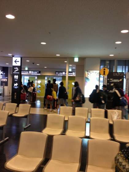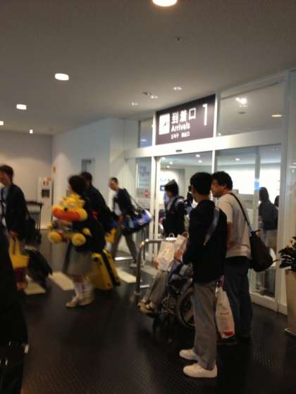 荷物を受け取り、解団式を行う場所に移動しています。
