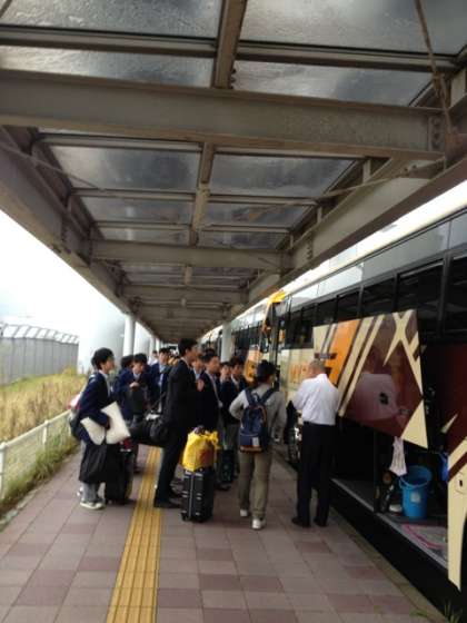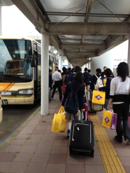 これから降車場所毎にバスへ乗り込み、神戸空港を出発します。