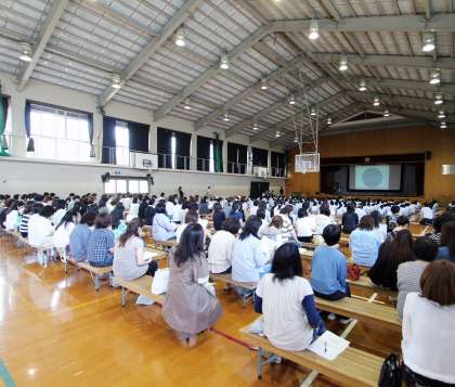 午後から体育館で、3年生と保護者の方を対象に進路学習会がありました。