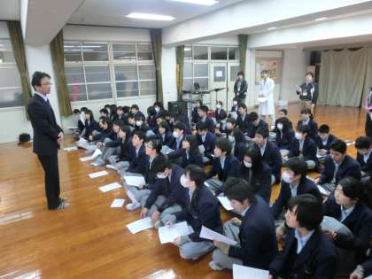 中期選抜を受ける3年生は、受検校ごとに分かれ担当の先生から明日の受検に際しての注意事項などの打ち合わせをしました。少し緊張した顔で下校した生徒たち。積み上げてきた力をしっかり発揮してくれることを祈っています。
