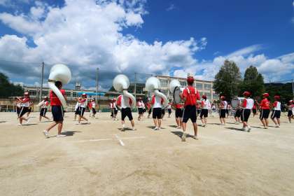 今日は、朝から部活動がありました。雲は多いものの、久しぶりの青空でした。