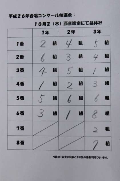 10月2日(木) 合唱コンクール 出演順抽選