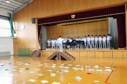 3・4限に体育館で、合唱コンクール3年リハーサルがありました。
