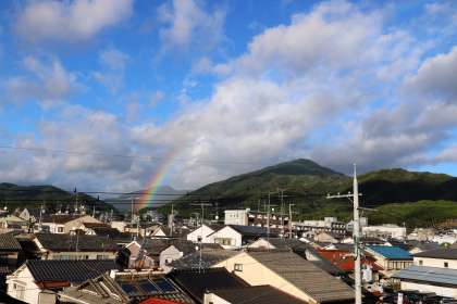 昼前には雨が止み、日が差してきました。終学活の頃に「虹」が出ていました。