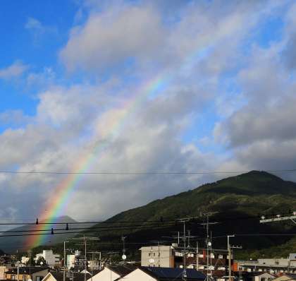 大きなはっきりとした「虹」が比叡山に架かっています。写真にも良く写りました。