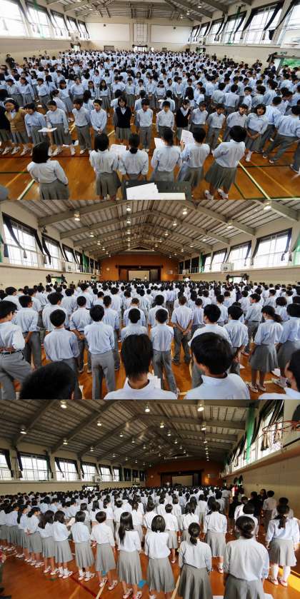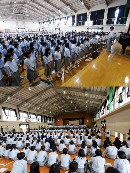 全校で歌を歌うだけではなく、3年生から1年生や2年生に個別に発声方法などを直接指導し、修学院中学校の合唱の伝統を伝えました。