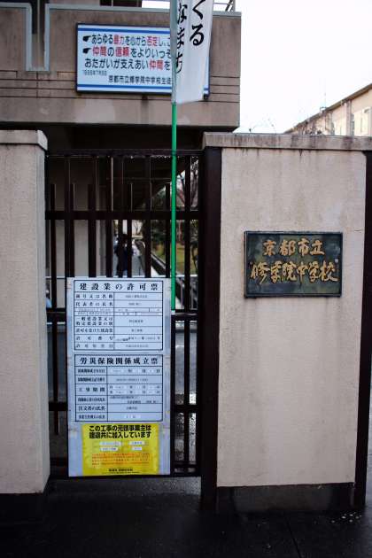 少し前(先月)から校門横に工事の表示が出ています。工事現場ではよく見かけますが,学校ではあまり目にすることが少ない表示です。