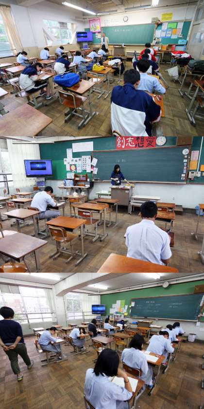 放課後、修学院中学校を会場にして英語検定が実施されました。