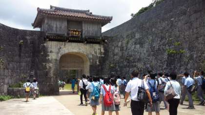 ガイドさんの案内で首里城を見学中です。