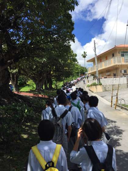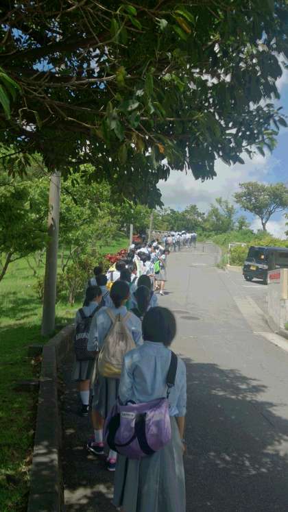 バスを降りて、バスガイドさんの案内で登っていきます。