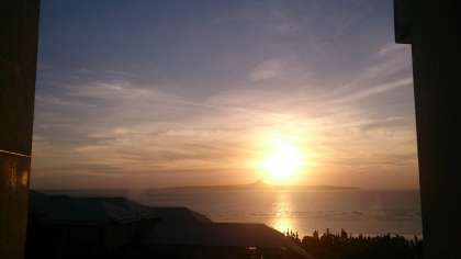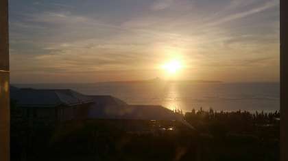 夕焼けの海を見ながら、夕食です。