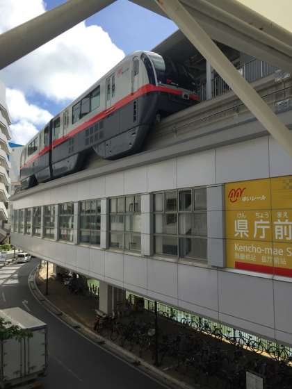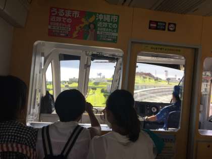 ゆいレール(モノレール)で、空港に向かっています。