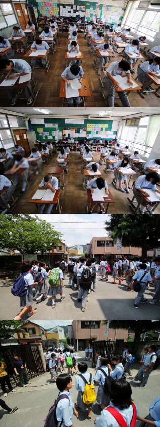 明日で定期テスト終了です。テスト終了、避難訓練があります。