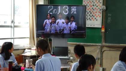 今日と明日の2日間,2年生は一乗寺バザーで売り出す各班の商品を昼休みの全校テレビ放送でアピールします。みんな楽しそうに見ていました。1年生,3年生も買いに行きたくなる商品が見つかったことでしょう。