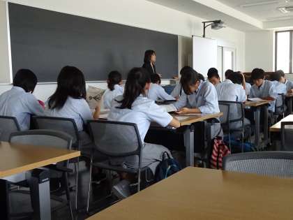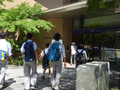佛教大学へ行った生徒は、大学の様子などのガイダンスを聞いた後、3グループに分かれて校内の散策をしました。