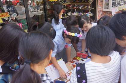 好天に恵まれ、一乗寺バザーを開催することができました。夏休み前から商品の構想を練り、一生懸命作ってきたそれぞれのオリジナル商品を販売しました。自分たちが作ったものを買ってもらえる喜び、褒めてもらえる充実感、そして会計などの責任や販売の難しさなど多くのことを学ぶことができました。
