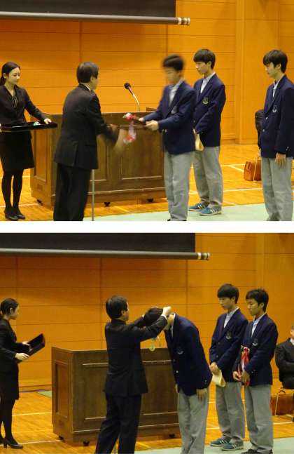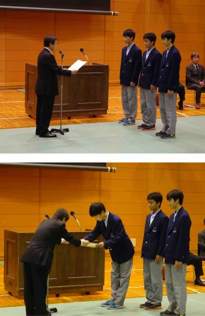 生徒に対して,京都市教育委員長より「京都市中学校体育表彰」が