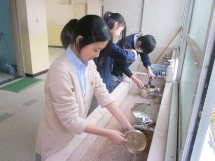 明日から昼までの授業になります。今日が学校で昼食をとる第2期の最終日でした。最終日には,毎回保健委員が昼食時にお茶をいれていただいているやかんを磨いて,きれいにしてくれています。