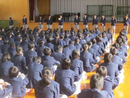 生徒会学級役員を中心に今期の振り返りを発表し,先生方から冬休み中の学習や生活についてお話がありました。