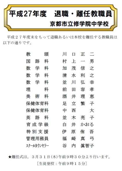 修学院小学校 修学院第二小学校 上高野小学校 八瀬小学校 教員公募要項 教員公募要項
