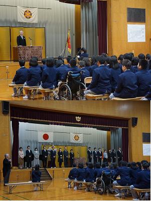 まだ少し大きい通学服に身を包み,少し緊張した面持ちでしたが,堂々と会場へ入場してくれました。