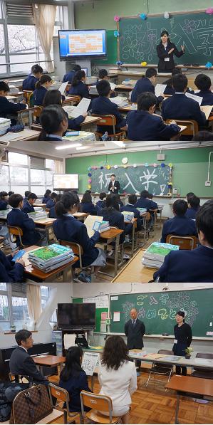 入学式終了後,担任発表があり,それぞれの担任に引率されて各教室に入り,最初の学活をもちました。担任の紹介と所信表明をしっかりと聞き,それぞれがこれからの中学校生活への気持ちを新たにしてくれたと思います。