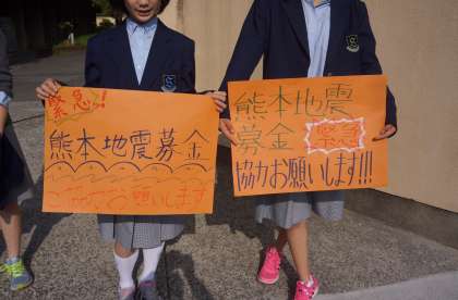 熊本の震災をうけ,生徒会が緊急の赤い羽根共同募金活動を明日からすることになりました。