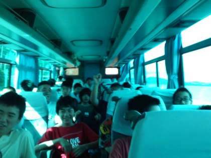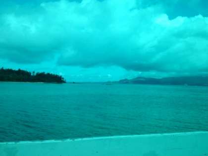 現在ホテルを出発し,美しい海の景色を眺めながら,向かっています。