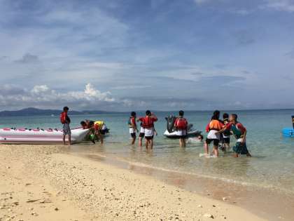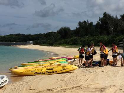 これからクラス毎にグラスボート、バナナボート、シーカヤックを体験します。