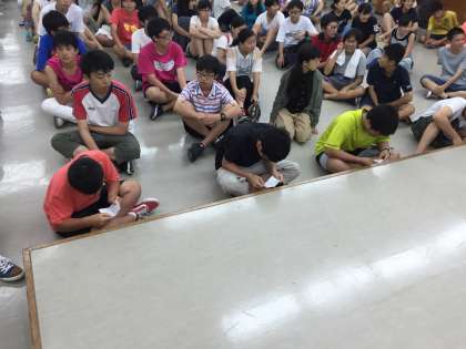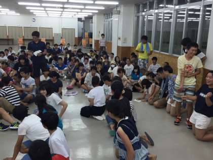10秒で沖縄の方言を覚えて伝言していくクラス対抗ゲームです。