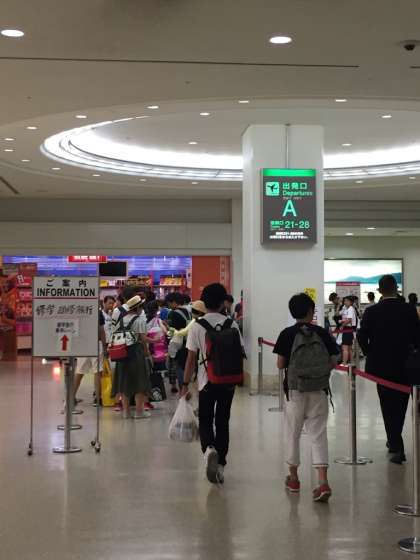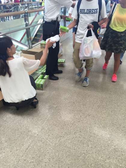 添乗員さんからおにぎりを受け取り、手荷物検査へ向かいます。
