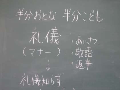 1年生は、「半分おとな、半分こども」という読み物から、礼儀について考えました。