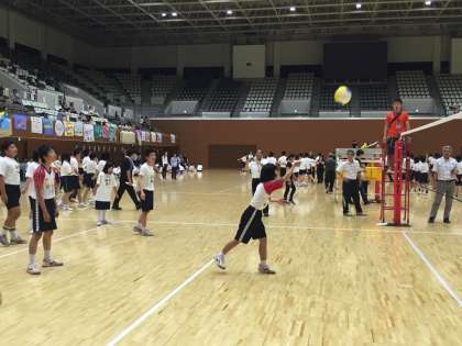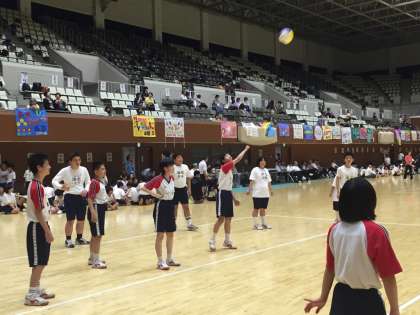 午前中は洛北中学校との合同チームでバレーボールに参加しています。