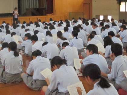今日の5限に,2年生全員が体育館に集まって,