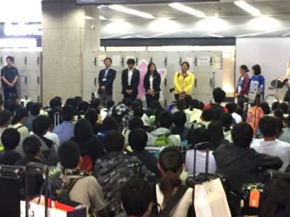 解団式を行い,お世話になった添乗員の方々,