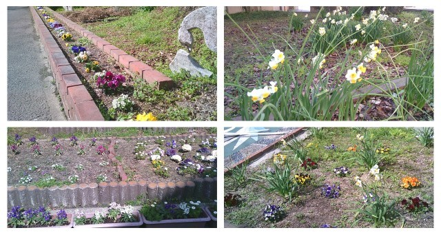 先月の大雪の寒さから、徐々に春らしい気候に近づいてきました。修学院中学の校門あたりにきれいな花が咲き誇っています。特にパンジーの花がきれいに咲いています。よく見ると等間隔にきれいに植えられています。同じ花でも植える配置によって、そのきれいさは変わってきます。きっと園芸部の部員が綿密に計画して植えてくれたのでしょう。また、校門付近には水仙の花が見ごろになっています。これは校務支援員の方が数年かけて植えられたもので、株分けしながらどんどん増えていきました。これもしっかりと計画して植えていただいたんですね。校門は学校の顔、きれいな花があるとほっとしますね。